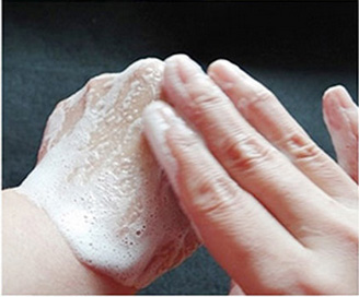 2.적당량 손바닥에 덜어 물을 묻혀 충분히 거품을 낸 후,얼굴 전체를 마사지하듯 거품세안합니다.
